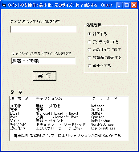 | Window を操作(終了・アクティブ・元のサイズに戻す・最前面に表示・最小化) (001) | |