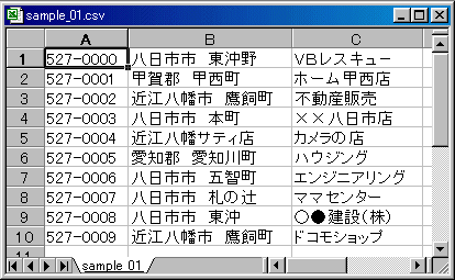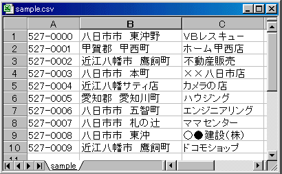 & vbCrLf のようにして表示されると表示幅が揃い、きれいに表示できます。書込んだCSVファイルは関連付起動で簡単にエクセルで表示できます。 Shell ("start.exe " & App.Path & "\sample.csv") |